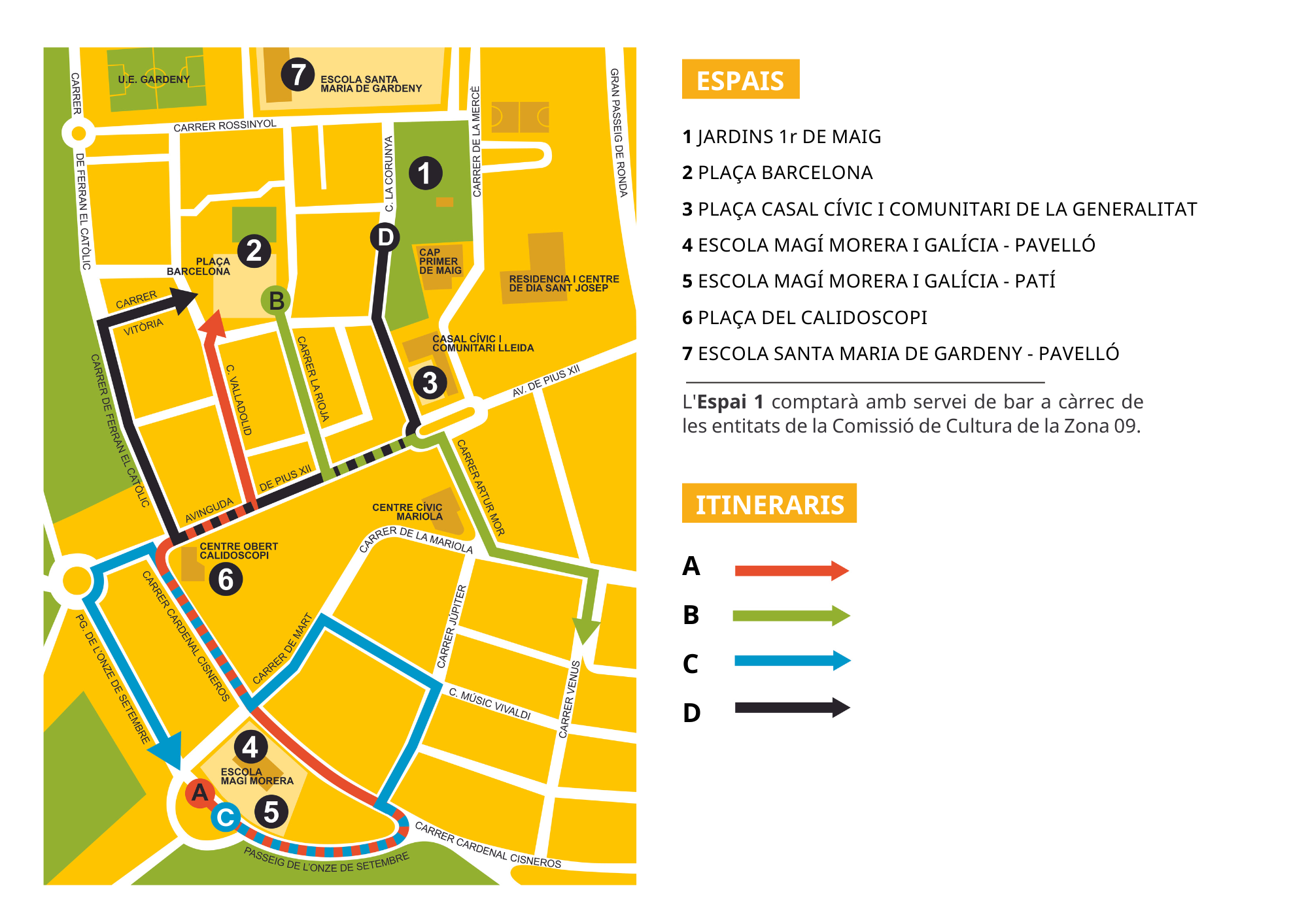 • Tots els espectacles són gratuïts però en els espais 4 i 5 cal reservar entrada perquè l'aforament és limitat.
